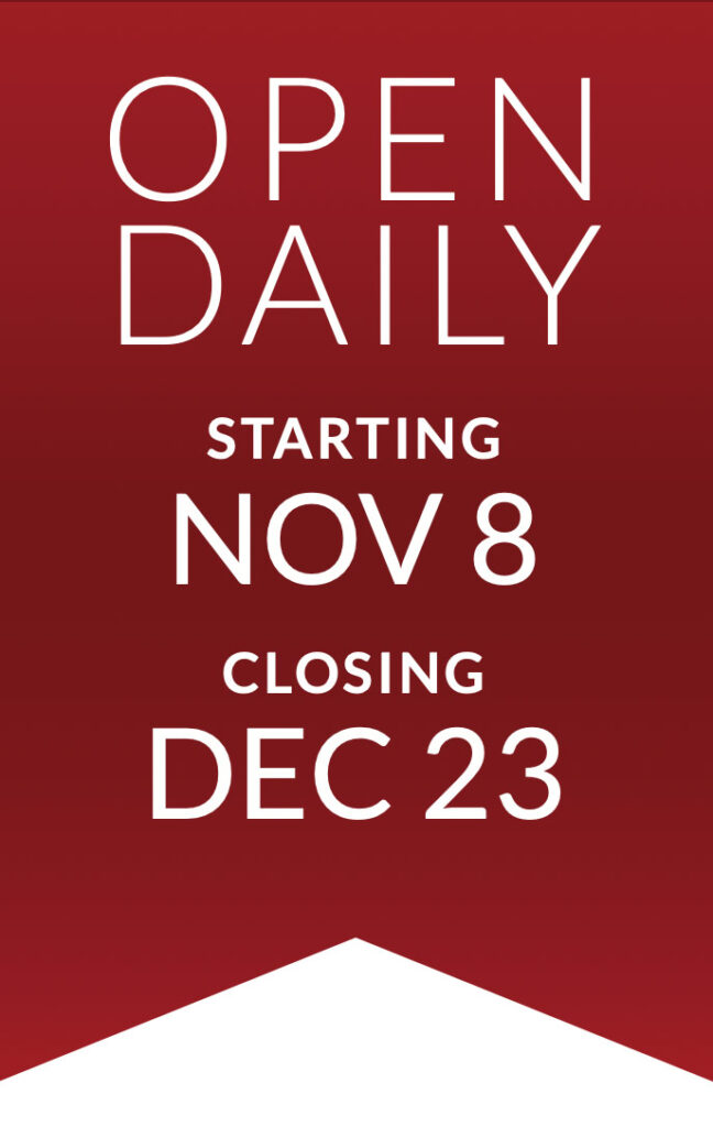 DATES: Saturday, November 8 (Opening Day) through Tuesday, December 23 (closed on Thanks-giving Day)